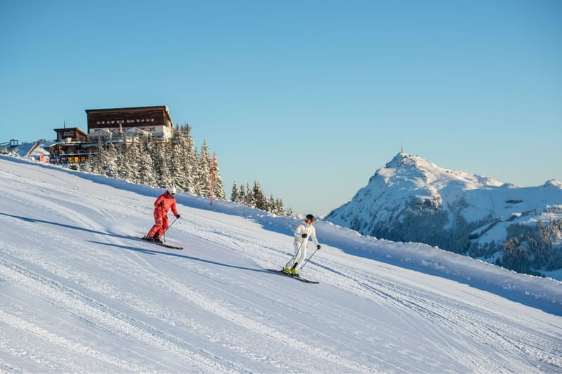 The resort sits relatively at an altitude between 800m and 2000m, with a ski area that extends across several interconnected mountains. Accessible within approximately 60 minutes from Salzburg airport, Kitzbühel offers convenience alongside quality skiing.