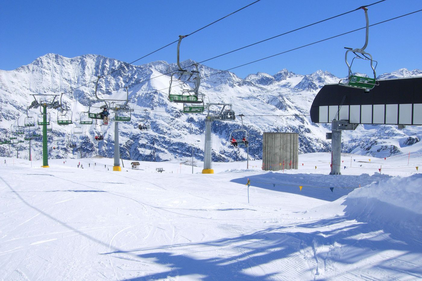 "Fantastic ski area, long and wide runs with option to ski to France. Very quiet, rarely queue for a lift."