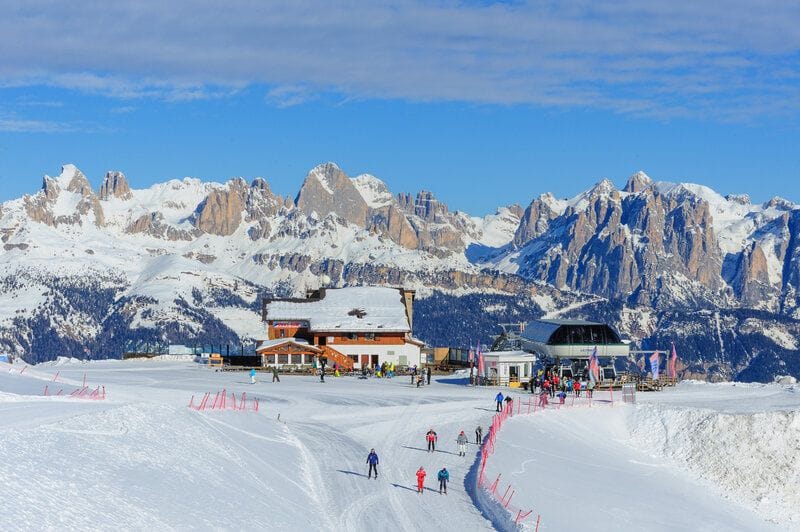 Moena-Alpe Lusia-Bellamonte, part of the larger Val di Fassa ski area, offers extensive skiing opportunities with well-groomed slopes for all levels. The resort is unique for its panoramic views and sunny disposition. The modern lift system ensures a smooth skiing experience across diverse terrain. The town of Moena has a vibrant après-ski scene with various dining and entertainment options, offering a lively atmosphere after a day on the slopes. This resort is great for those looking for extensive skiing and a dynamic town atmosphere.