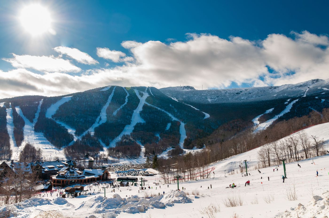 Located in northern Vermont, the resort spans across Mount Mansfield (Vermont's highest peak) and Spruce Peak, connected by a gondola. The resort offers 117 runs across a modest yet well-utilised vertical drop from 1,339m down to 620m.