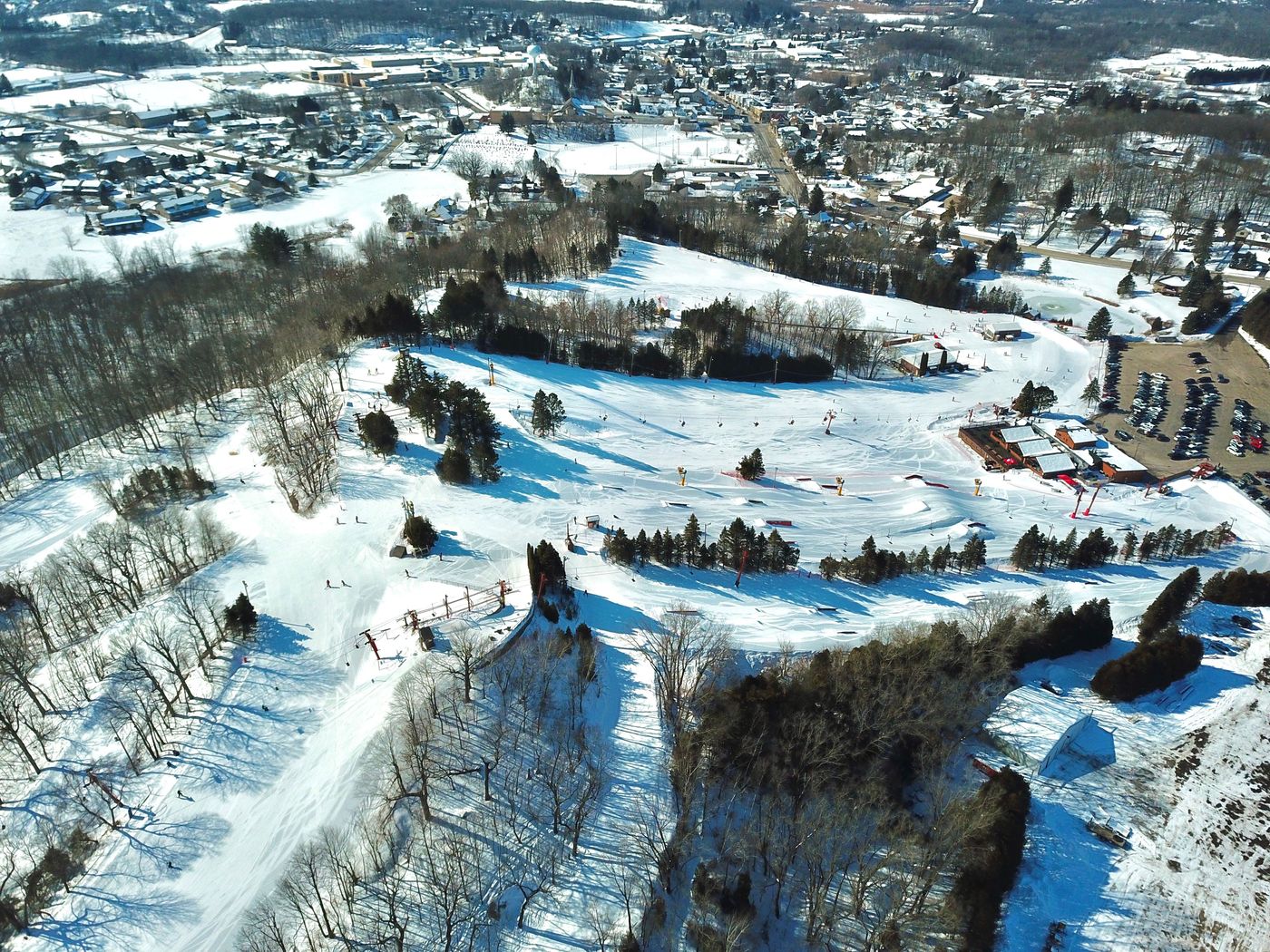 Best parts of little Switzerland are the Terrain parks. They are very well done and offer a ton of fun for freestyle skiers and snowboarders of all levels. They have a quick tow rope that allows easy access to the terrain park. They also have a small park with easier and smaller features which is absolutely awesome for learning basic freestyle skills. The small park also has its own tow rope. These parks are a ton of fun.